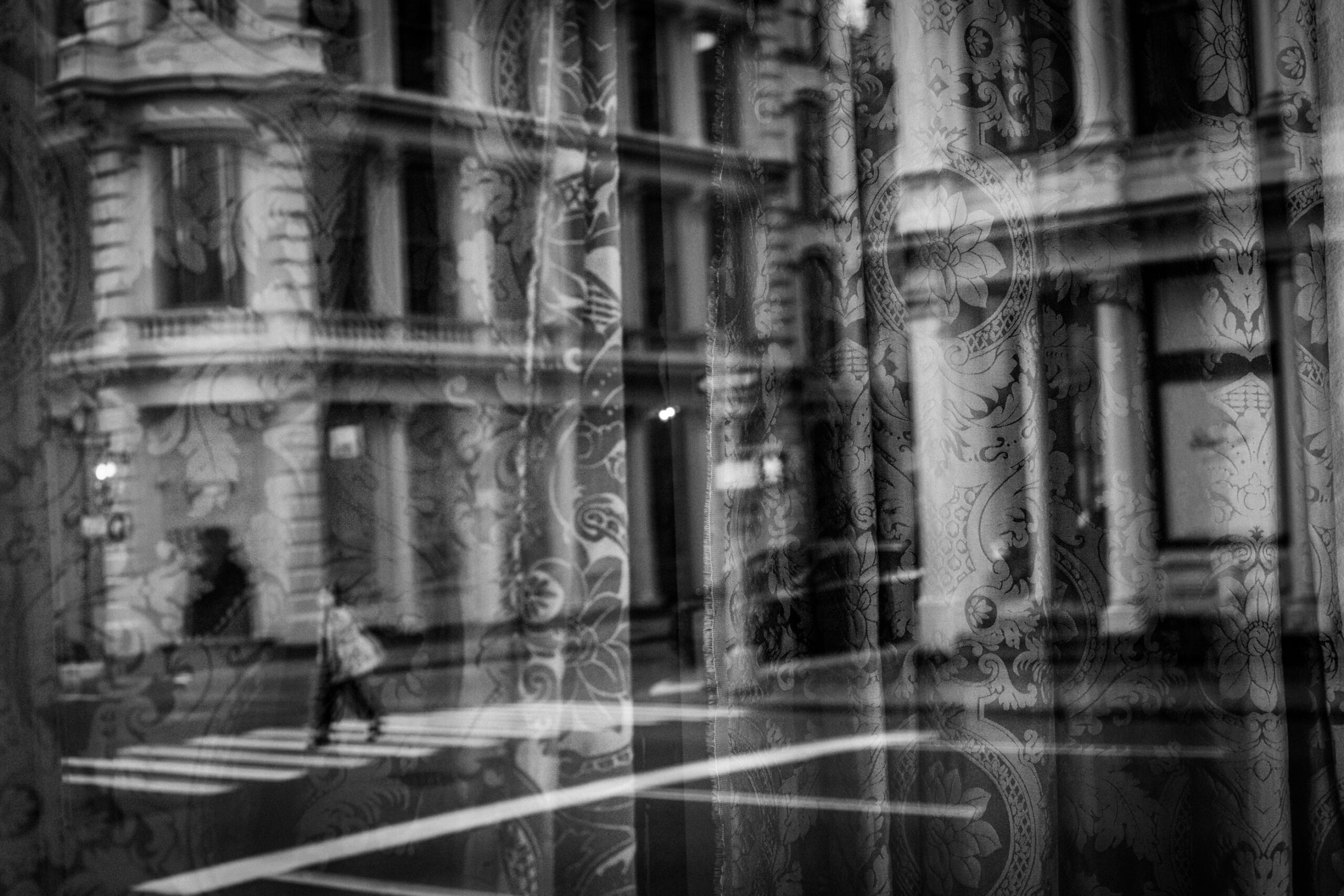 Intermission originated as a personal exercise during lockdown in NYC, a time when the passage of days felt both uncertain and unanchored. Conceived as a private and introspective endeavor, the project allowed the artist to photograph without purpose or expectation—first as a way to escape the eerie stillness of confinement, and later, the persistent noise of daily life.